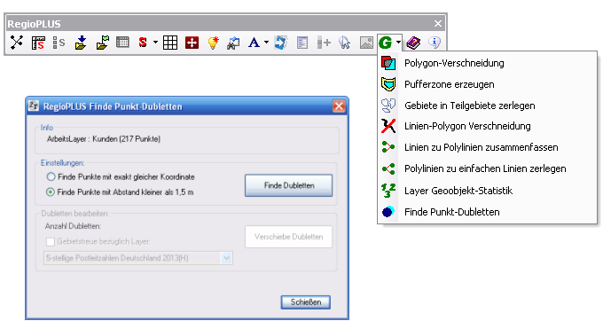 Daher ist es möglich, neben Punkt-Dubletten mit exakt gleicher Position (Koordinate) auch Punkte zu finden, deren Abstand