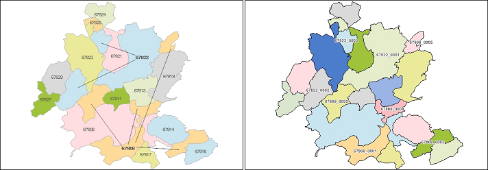 Teilgebiete zerlegen" können geteilte PLZ-Gebiete in ihre
