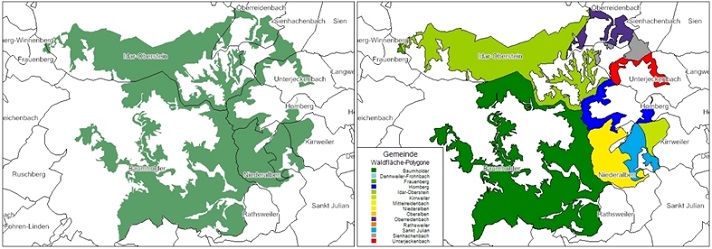 in mehrere Teilflächen je Gemeinde zerlegen: