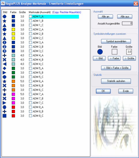 die Merkmale als auch die Symbole in die Analyse-Merkmale
