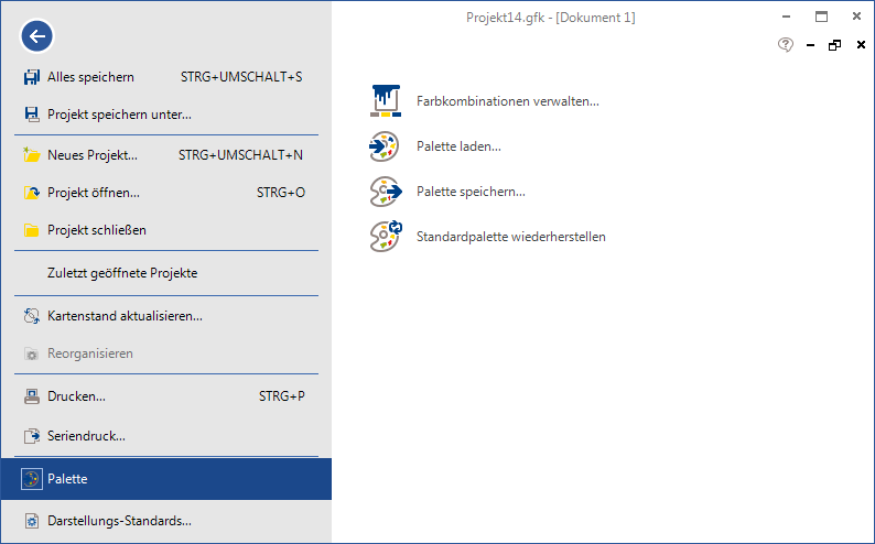 In RegioGraph ab Version 2018 wird die Palette beim Beenden des Programms automatisch unter palette.pal gespeichert!